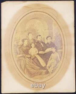 President Grant and Family, oval composite drawn portrait. Antique albumin sepia tone photo on board. Measures 8 x 10 inches, suitable for framing.