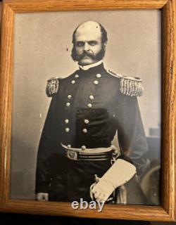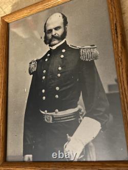 This is a stunning framed 8.5" x 10.5" photograph featuring Union Soldier General Ambrose Burnside during the Civil War. The photo is vintage but I cannot confirm the date. It tells me the photo was not touched up. The frame looks newer than the photo. The image captures the essence of history and is beautifully framed, making it a great addition to any art collection.